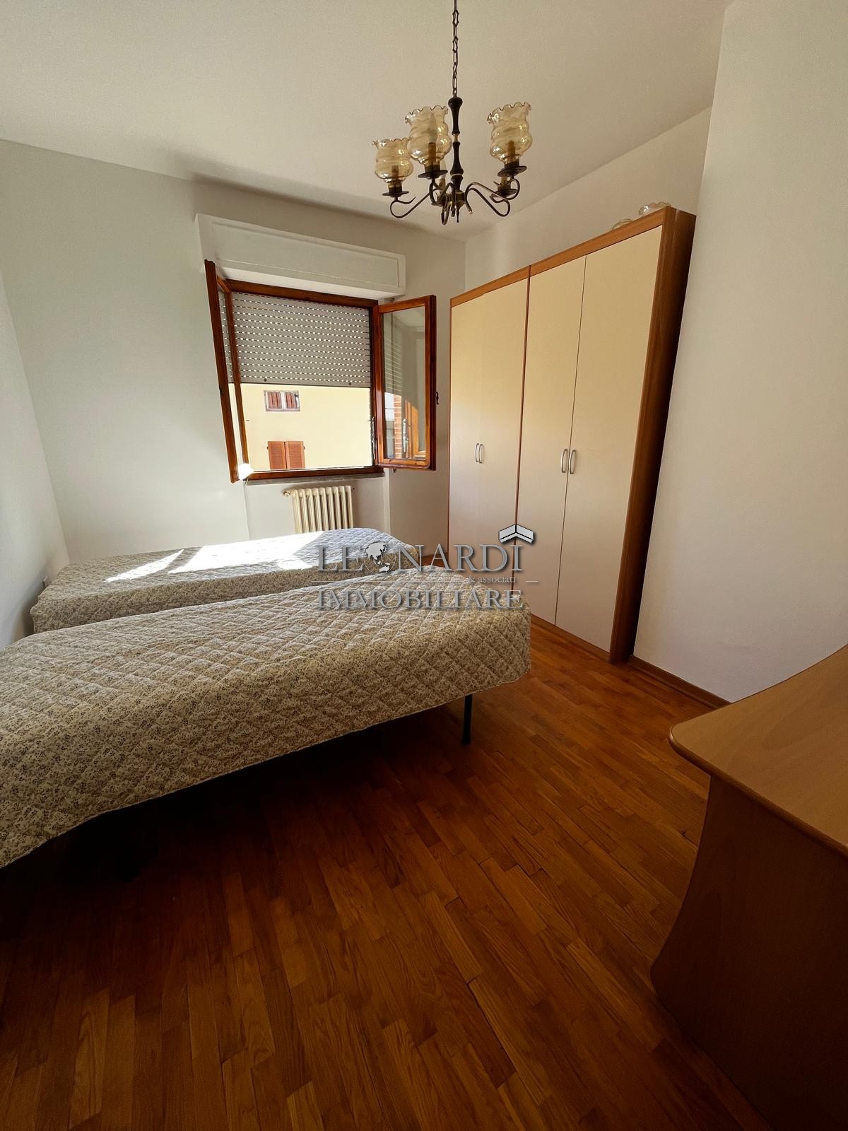 L’immobile è composto da un ampio ingresso, sala con accesso a balcone, cucina abitabile, due camere matrimoniali, due bagni, corridoio con ripostiglio e, secondo le esigenze, possibilità di realizzare uno studio.