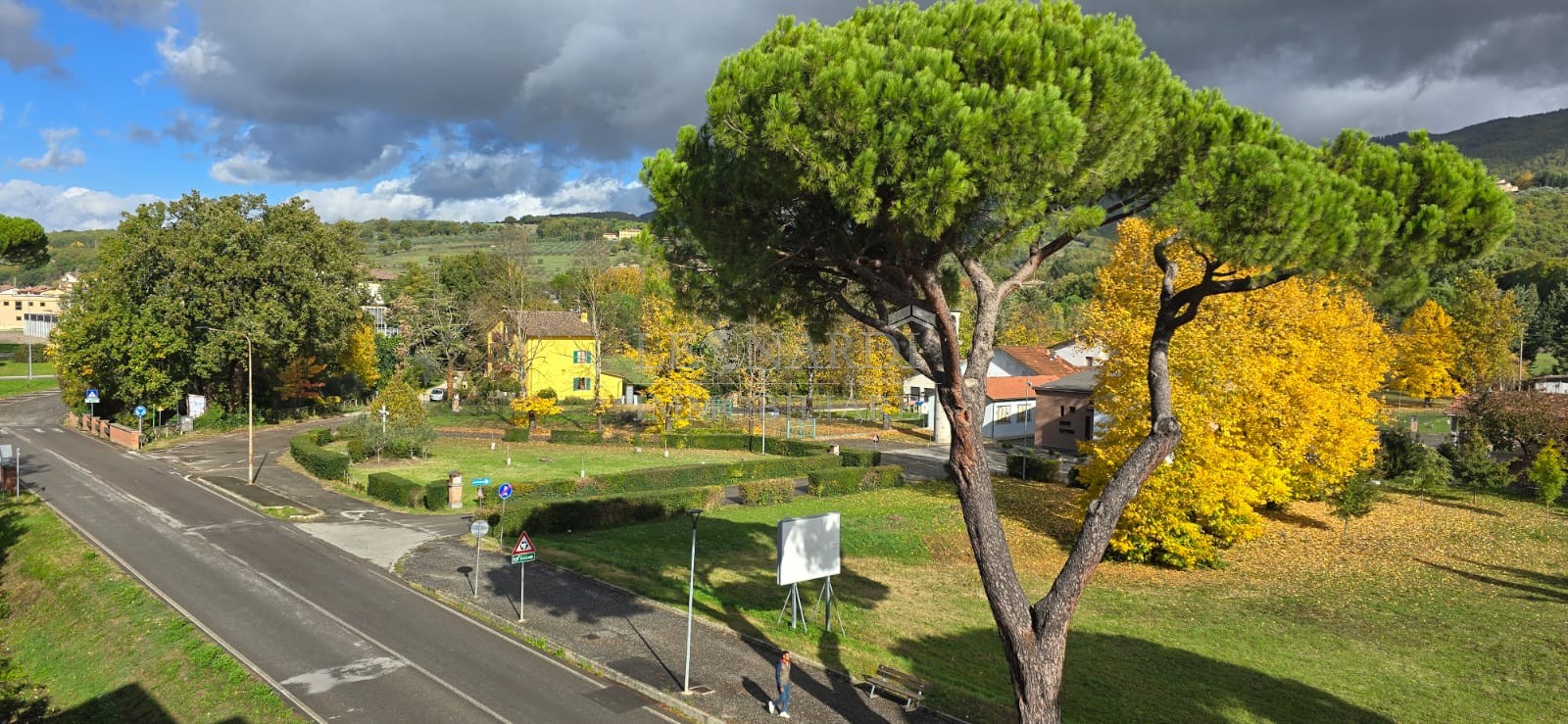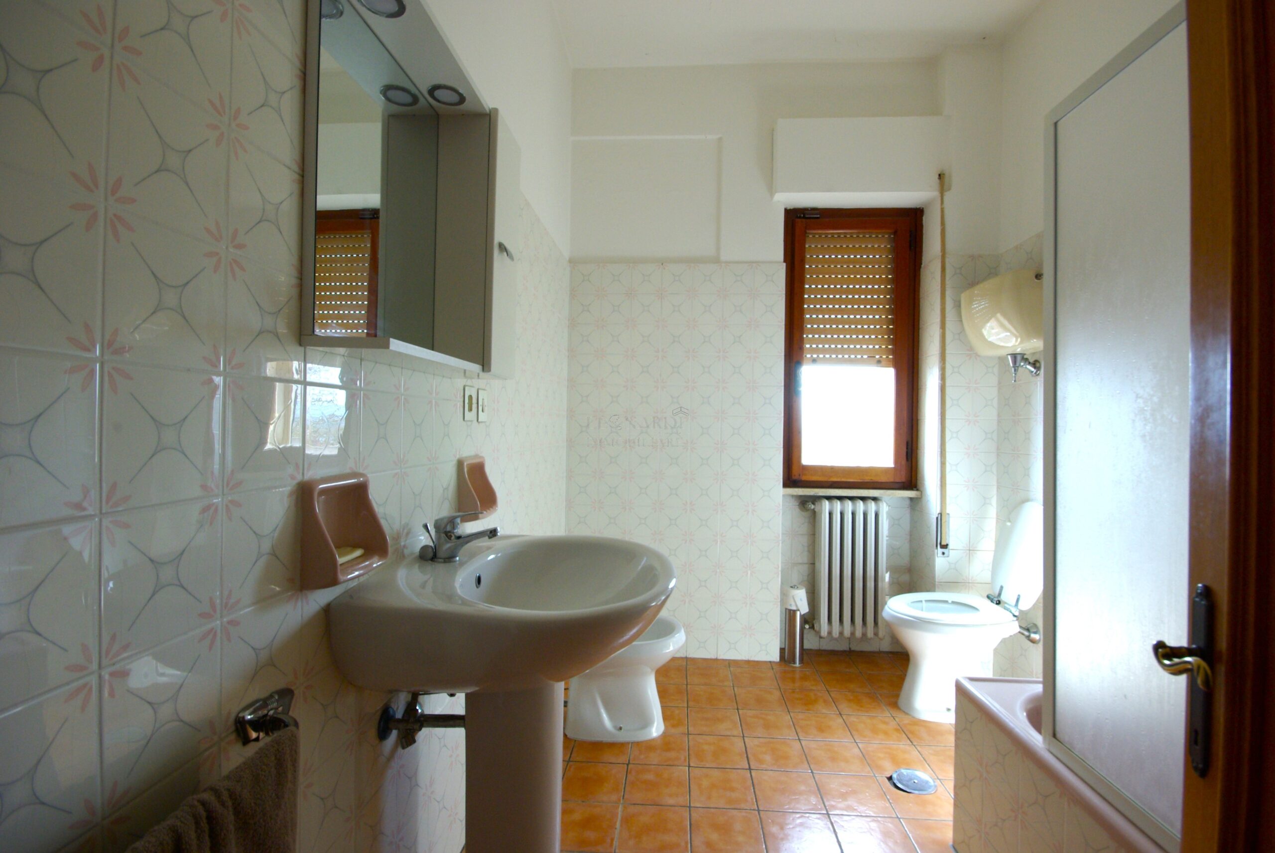 L’immobile è composto da ingresso con libreria, soggiorno luminoso con camino, cucinotto e balcone; le due ampie finestre della zona giorno garantiscono un’ottima luminosità naturale e un piacevole affaccio sui colli di Sansepolcro.