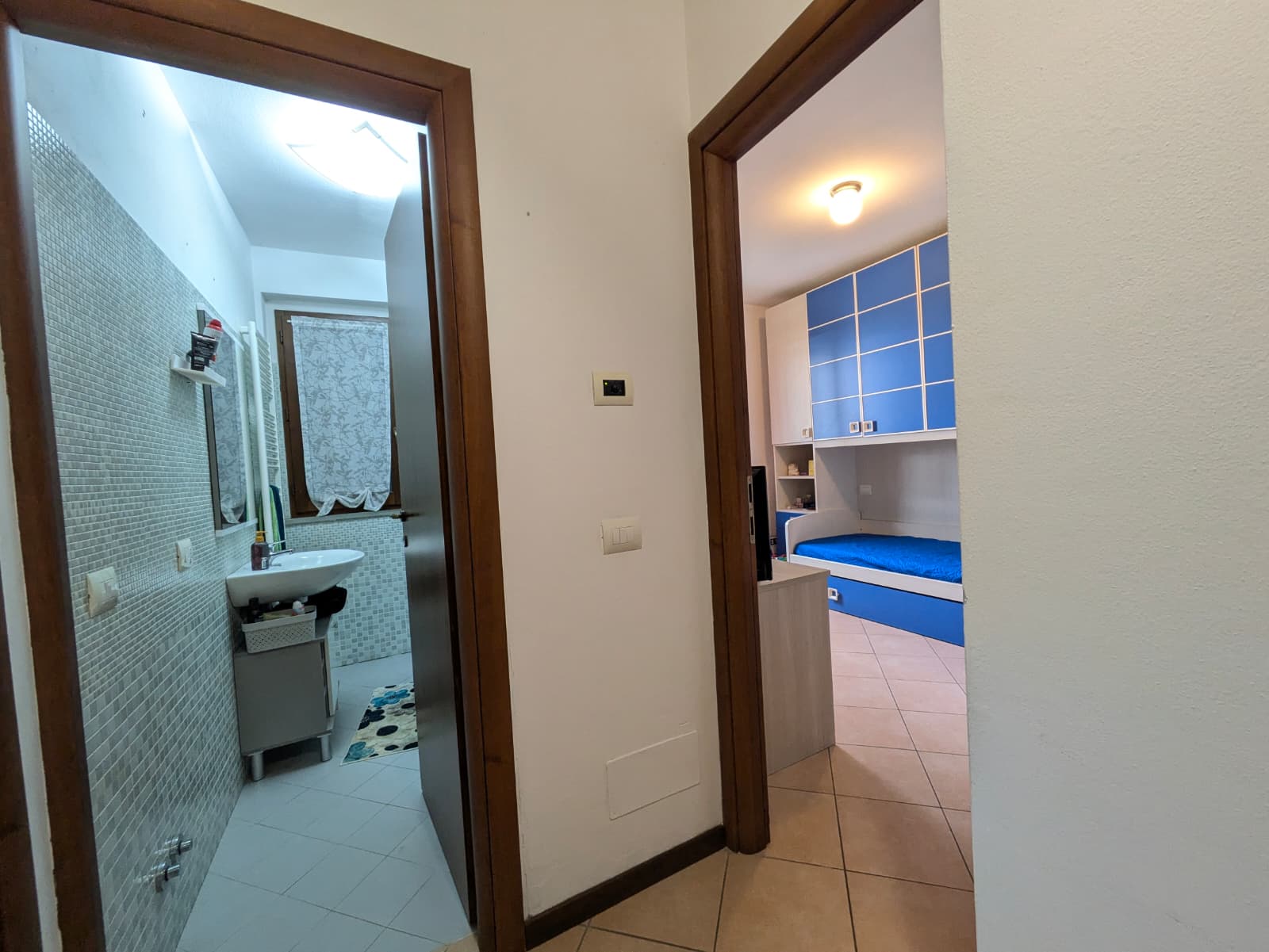 La scala interna conduce al piano superiore, dove troviamo ulteriori due camere  e un bagno finestrato, pensati per offrire comfort e privacy, oltre a terrazzo. Completano la proprietà piccola resede e ampio garage di mq 30 ca.