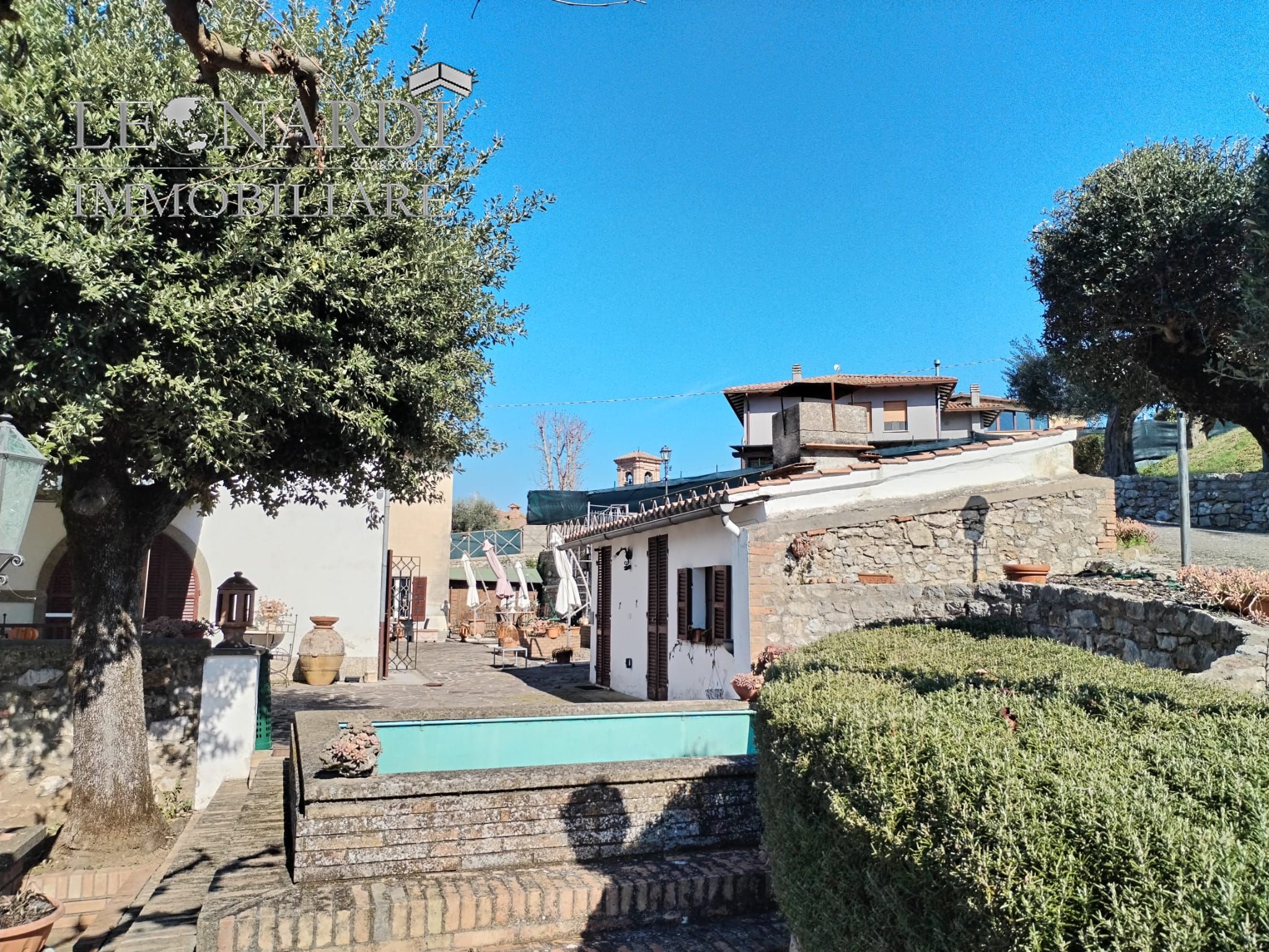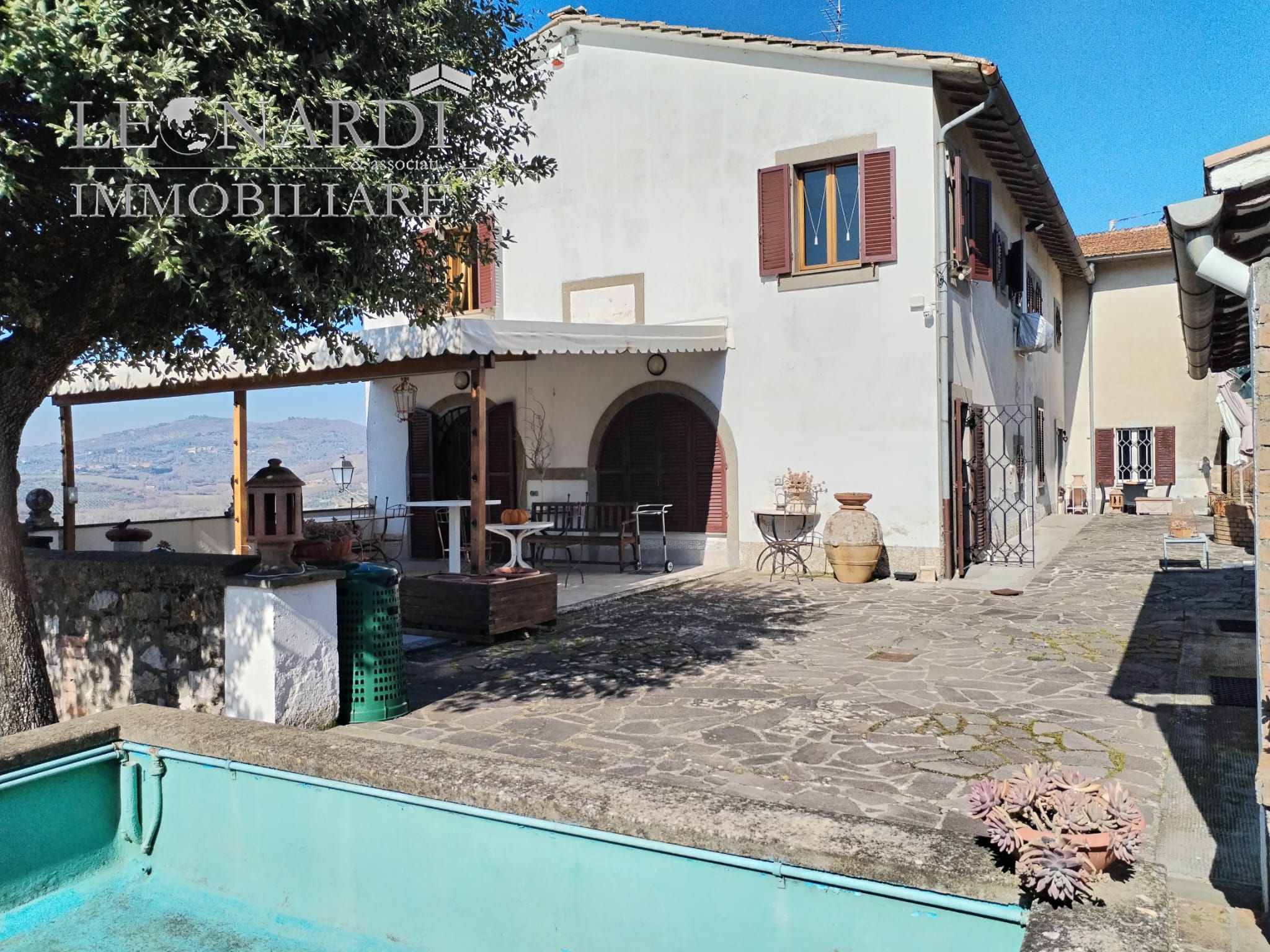 In posizione riservata e panoramica, proponiamo in vendita splendida casa padronale di circa 800 mq, immersa in un terreno privato di 8.000 mq tutto recintato, impreziosito da 90 piante di ulivo, piscina di generose dimensioni, vari annessi e serra.