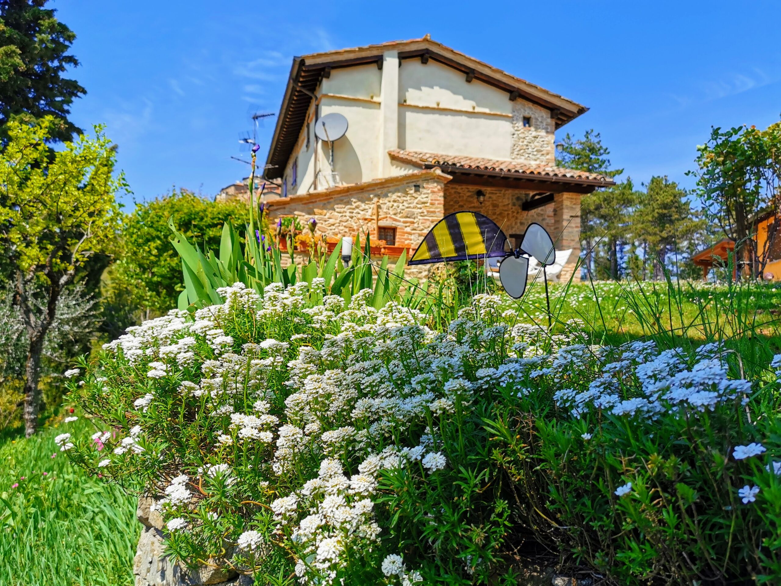 Vendesi in posizione panoramica nel  Comune di Monte Santa Maria Tiberina, due casali completamente ristrutturati con terreno e piccolo vigneto. Gli  edifici, complessivamente di 310 mq ca,  sorgono sui resti di una torre del XIII secolo e dispongono ognuno di 4 camere e 4 bagni. Il terreno pertinenziale completamente recintato di circa 1,0 ha è costituito da giardino, bosco e un piccolo vigneto da recuperare, oltre ad ulteriori 3000 mq ca dove è presente una sorgente. Il primo casale  (180 mq, 2 camere e 2 bagni)  si struttura su due piani ed è così composto;  a pian terreno cucina, salotto e bagno e a piano primo  due camere e un altro bagno. Il secondo casale (130 mq, 2 camere e 2 bagni) si sviluppa  su un solo piano che comprende cucina, salotto, bagno e due camere ;  esternamente, con accesso indipendente, si trovano due vani attualmente usati come cantina e vano tecnico. Rete idrica comunale, pozzo privato di 160 di profondità con abbondante acqua e impianto fotovoltaico di 6kw- Restauro conservativo con finiture di pregio mantenendo inalterata la storicità dell’immobile. Vista mozzafiato. Accesso in strada asfaltata con i principali servizi a poca distanza.
