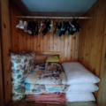 l’appartamento è composto di 4,5 vani per un totale di 96 mq è dotato di cucina completa di tutti gli elettrodomestici (frigo, lavastoviglie, cucina economica elettrica con forno, fornetto, microonde, lavatrice e 2 tv), stufa a legna in maiolica con termosifoni in ogni stanza, bagno con doccia, camera da letto matrimoniale con armadio a muro, salotto con divano letto e caminetto, ripostiglio, ampia soffitta, spazio esterno esclusivo per legname.