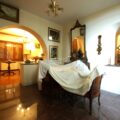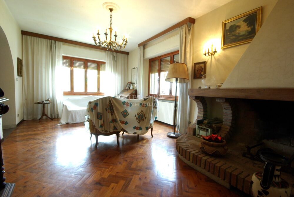 Il piano terra con accesso diretto al giardino esclusivo di oltre 1.000 mq è composto di ingresso con scala scenica che porta al piano primo, soggiorno diviso in due spazi con camino tra i due, cucina abitabile, disimpegno con ascensore, due ripostigli e bagno oltre ad un ulteriore disimpegno che unisce tutti vani.