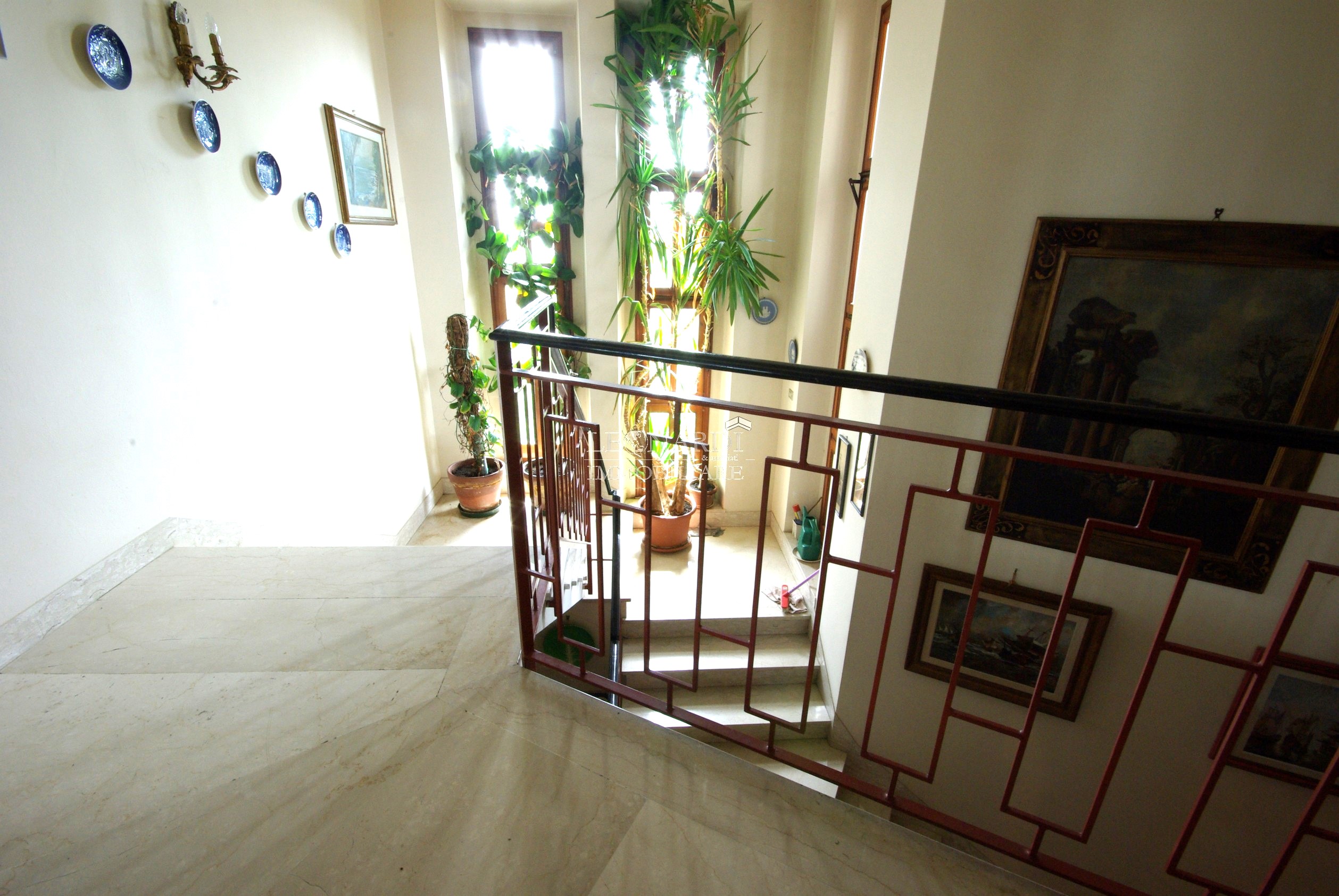 Il piano superiore ospita la zona notte, composta da quattro camere matrimoniali, disimpegno con ascensore e due bagni.