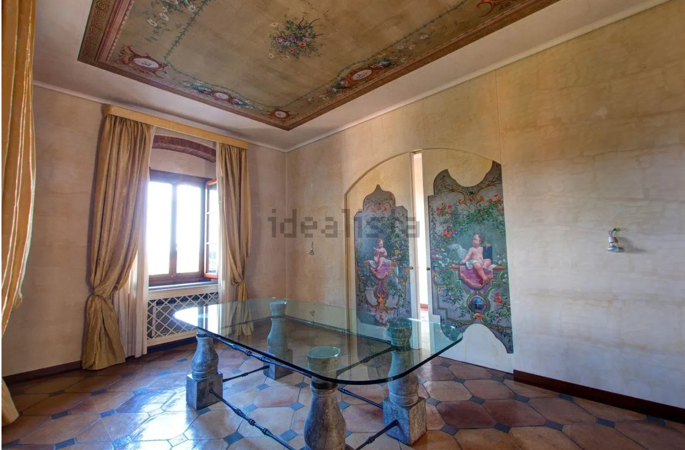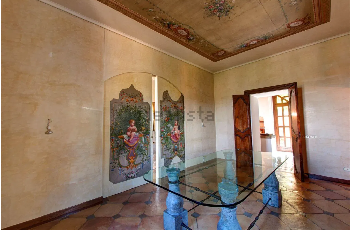 - Sala da pranzo caratterizzata da soffitti affrescati con dipinti risalenti al XIX secolo.